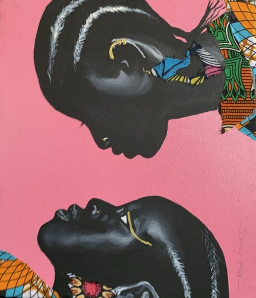 Since 2018, Segun has developed a distinctive style, inspired by the colourful ankara fabric worn by his Yoruba mother for occasions and celebrations. Segun attributes his creativity to his mother and paid homage to her with his first solo exhibition in Lagos titled, Omo Adérónké, (son of Adérónké).