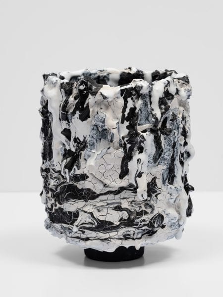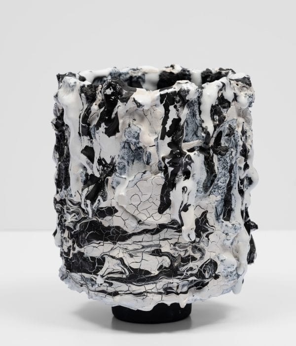 Brian Rochefort (b. 1985) lives and works in Los Angeles, and is known for his stoneware and earthenware sculptures that are often layered with multiple glazes or with melted glass. His bulbous vessels sculpted from clay violently erupt in both form and colour creating a visceral effect. Sometimes likened to volcanoes with their cracked-glazed polychrome surfaces that evoke the ruptures and craters caused by violent natural phenomena, at other times his vessels visually parallel other natural settings such as tropical rainforests and barrier reefs. With painstaking care and accuracy, his ceramics are created to achieve an organic sense of fluidity; they are alive and oozing, yet frozen in time. Rochefort holds a BFA from RISDI (2007) and participated in the Lillian Fellowship Residency at the Archie Bray Foundation (2009). He has shown in a solo capacity internationally, with Van Doren Waxter and 11R, New York, NY; Massimo De Carlo, London and Milan; Caterina Tognon, Venice, Italy; Sorry We’re Closed, Brussels, Belgium; and Bernier Eliades, Athens. Group exhibitions include: The Cabin, Los Angeles, CA; Sorry We’re Closed, Brussels; Retrospective Gallery, Hudson, NY; and Steve Turner, Los Angeles, CA.