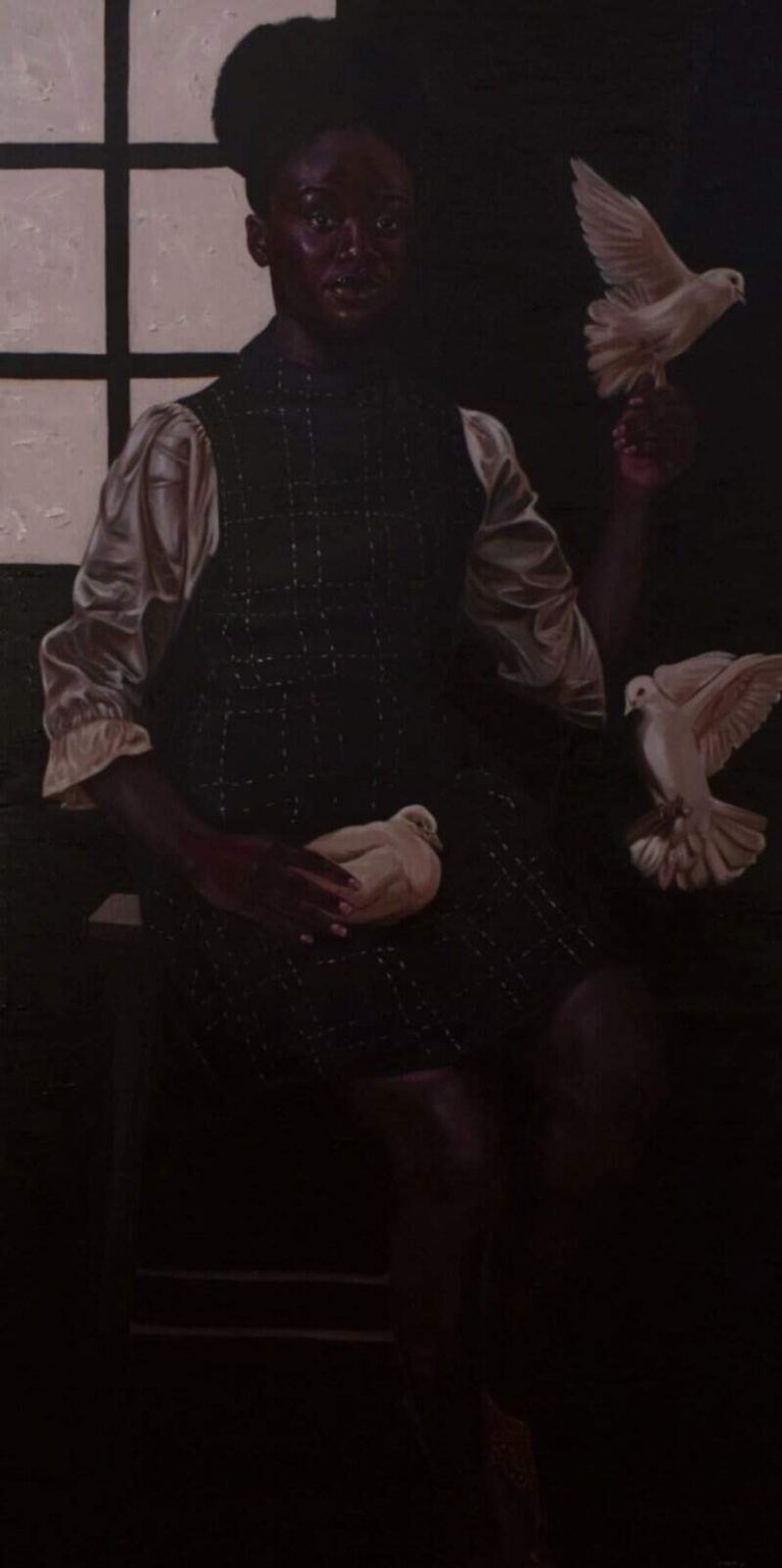 Write The Future Project with Okadabooks 2021. Illustration for Magnum Ice-cream ad with co-creator Barry Yusufu. 2022. Christie’s Post-War and Contemporary Art Online Auction, 2022. Traditionally, he works using acrylic as his primary medium. His narrative revolves around enlightening Africans on the effects that the history of slavery and racism has had on African people in finding cultural identity; Trying to bring to light the subtle effects of whitewashing amongst the African people.