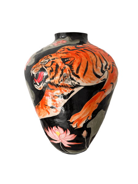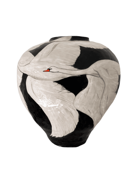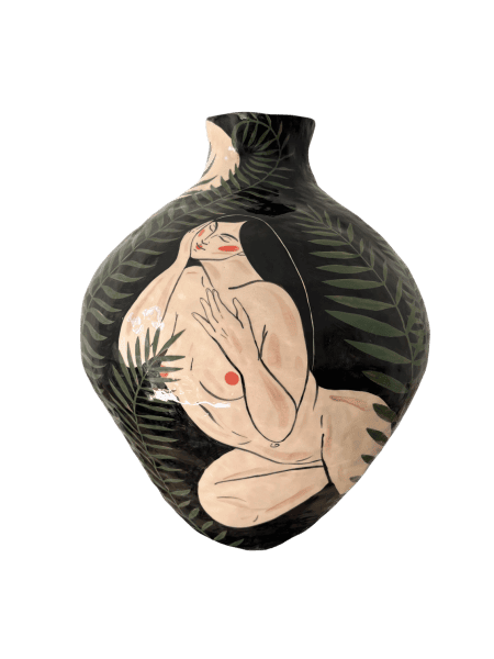 Using the physical challenge of making vases on a larger scale as a way to channel her emotional energy, Julia symbolises these emotions and struggles in the painting of each piece, using powerful imagery often depicting nude female forms and wild looking natural elements. Julia has exhibited around Cornwall, London and New York, and is currently based at her studio in Falmouth, owned by the family run Morgan’s Gallery and studios.