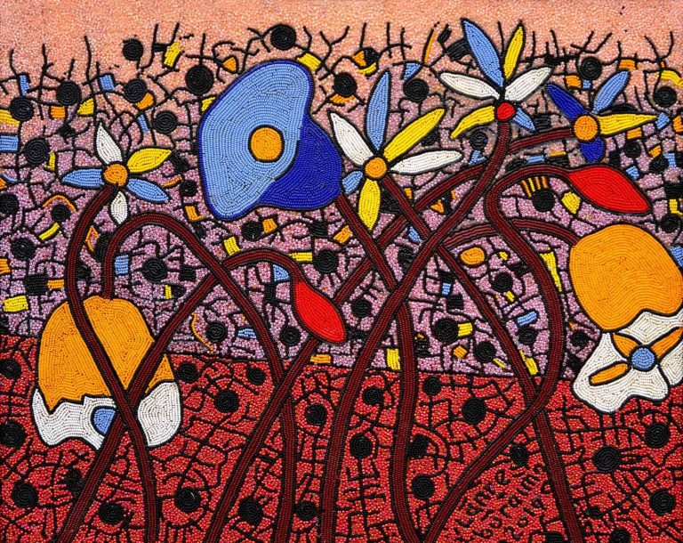 Born 1976 in Osogbo, Osun State, Nigeria, Lanre trained under the hands of his parents, Chief Jimoh Buraimoh and Mrs. Alake Buraimoh and graduated with a degree in Business Administration from AMBROS Ali University and Osun State Polytechnic, Iree in 2001 and 2005 respectively. Inspired by the ancient city of Osogbo, Lanre’s bead painting technique projects Yoruba symbols and the theme of his works majorly reflect Yoruba traditional belief, love, entertainment, animals and unity.