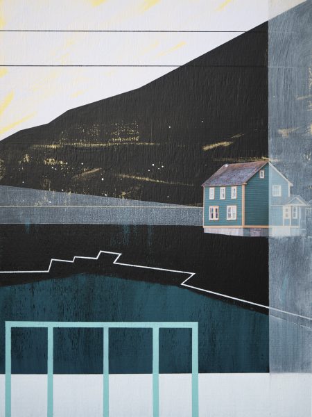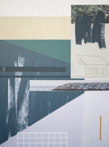 ‘I am interested in collecting imagery and materials from various sources to piece together visuals which are aesthetically and compositionally engaging. I enjoy using the juxtaposition of different media to consider surface, space, pattern and colour whilst the overlaying imagery, both found and personal, allows me to explore my interest in place and narrative. The fragmented landscapes which appear in my work come from an attraction to unfamiliar surroundings, quiet landscapes, architecture and the lives and stories of the people that inhabit these spaces. I also use personal memories of places I have visited or experienced to generate ideas and form new pieces of work.’
