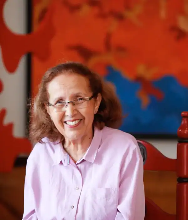 Malika Agueznay is a pioneering artist known for her contributions to Moroccan modernity and abstraction. She enrolled at the Casablanca School of Fine Arts in 1966, where she explored forms, lines, geometry, and color alongside other influential thinkers. Agueznay’s work gained strength through engraving, which she discovered in 1978 at the Moussem of Asilah. She furthered her technique by studying in New York and Paris, remaining faithful to the teachings of the Casablanca School. Her artwork often features the motif of seaweed, which she has continually renewed over fifty years, exploring its geometric forms and symbolic meanings. Agueznay’s art evokes a sense of balance, enhanced by warm colors and the addition of calligraphy, infusing her work with intense vibrancy.