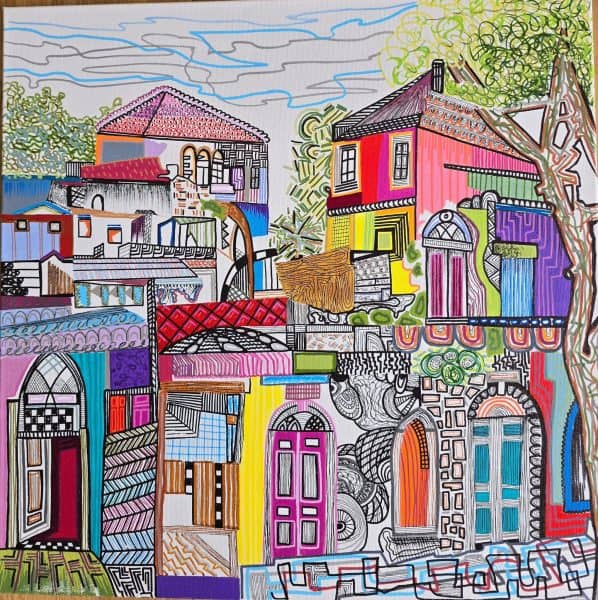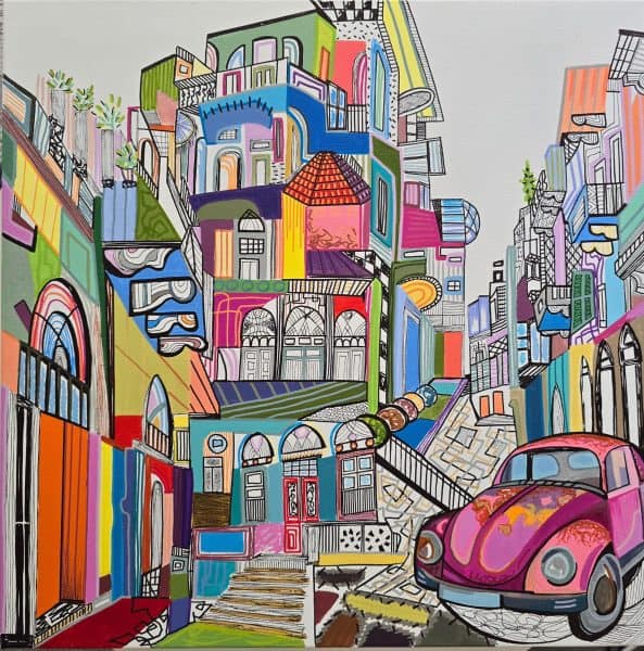 Her approach to painting is focused on geometric, vibrant compositions, rich in striking colour. The overarching message behind her work provokes her audience to find beauty and sensitivity amid all the ugliness around us. Her favorite artists are Salvador DalÃ, Pablo Picasso, and Wajih Nahle.