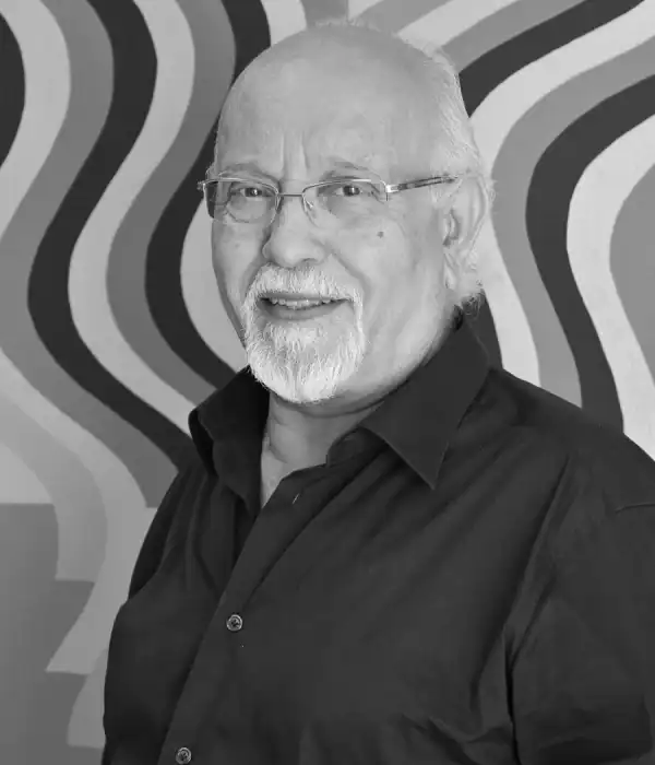 Mohamed Melehi, born in Assilah, Morocco in 1936, played a pivotal role in shaping postcolonial and pan-Arab artists’ networks through his geometric experiments and involvement with the Casablanca School. Beginning his artistic journey at a young age, Melehi studied in Spain and Italy before immersing himself in the vibrant cultural scene of Rome and later New York. His paintings, marked by bright colors and geometric abstraction, gained recognition in major exhibitions, solidifying his place in the American art scene. Returning to Morocco in 1964, Melehi joined the teaching staff of Casablanca’s École des Beaux-Arts, where he collaborated with fellow artists to develop a new artistic practice rooted in the reconfiguration of society. He advocated for the integration of art into daily life and organized cultural events such as the historic “Présence plastique” in Marrakech. Melehi’s work evolved over the decades, with a focus on the undulating wave motif that symbolizes a fusion of identity and modernity. His art has been exhibited worldwide, and retrospectives have celebrated his influential career.