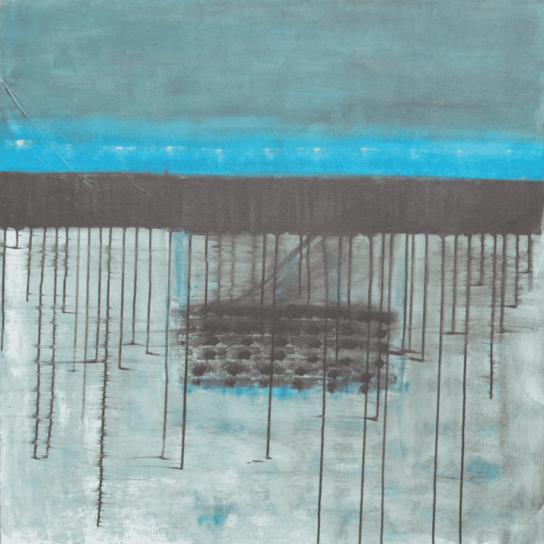 Neda creates layers of colours and textures which reflect and refract the mythological, philosophical, and emotional worlds of poets. Her paintings whether on canvas, paper or wood frequently mix oil, acrylics, ink and other materials to create depth and complexity translated into simplicity as she brings memories, myths and poetry together.