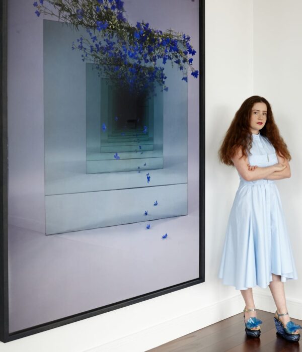 Working in photography, film, virtual and augmented reality, installation, and performance art, conceptual artist Sarah Meyohas explores the essence and power of emerging technology in a contemporary society. She became known for her conceptual work Bitchcoin, a physical art-funded cryptocurrency that challenges the value of both cryptocurrency and art. She was included in Forbes’ “30 Under 30” list in 2017. She earned degrees in Finance and International Relations from the University of Pennsylvania and an MFA from Yale University. Using hidden cameras and two-way mirrors to photograph flower petals displayed in an infinite loop, works such as Peach Petal Speculation (2017) allude to the deception of the art market in how an object’s worth is formed and maintained. Her work has been featured in The Wall Street Journal and Artforum.