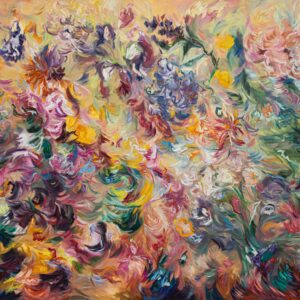 Working primarily at large scale, AlShawi’s compositions blend structure and spontaneity. Linear gestures and repeated marks build depth and texture, while light and colour converge to materialize presence and vibration. Still life and floral subjects often appear at moments of transition, allowing her to explore impermanence and transformation. Her paintings invite viewers to inhabit a space where abstraction articulates oneness, and the infinite is felt as an interior condition.