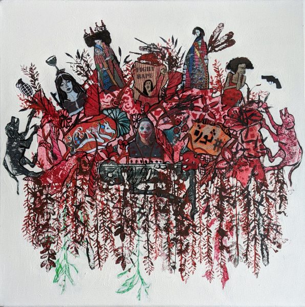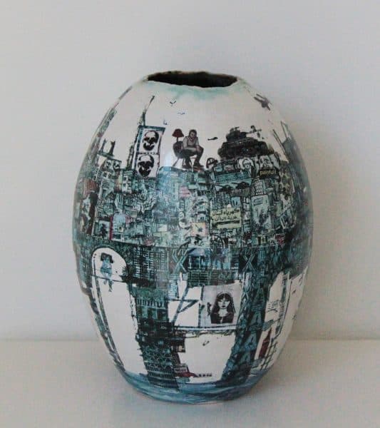 The artist uses various supports and mediums to document and explore the cultural and social changes and put on record our urban contemporary environment’s imprint as well as the impact of our society’s ideologies and political tendencies. Her work takes shape in installation, drawing, etching, experimental animation, sculpture and mainly painting. Themes that are central to her vision include present-day issues, like migration and the relation between memories and people on the move.