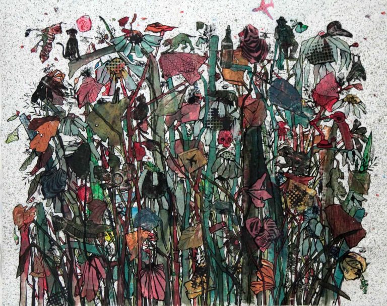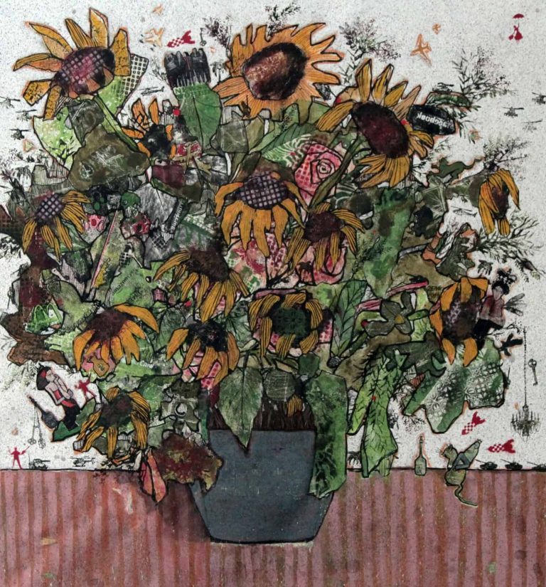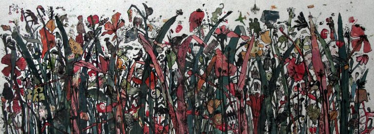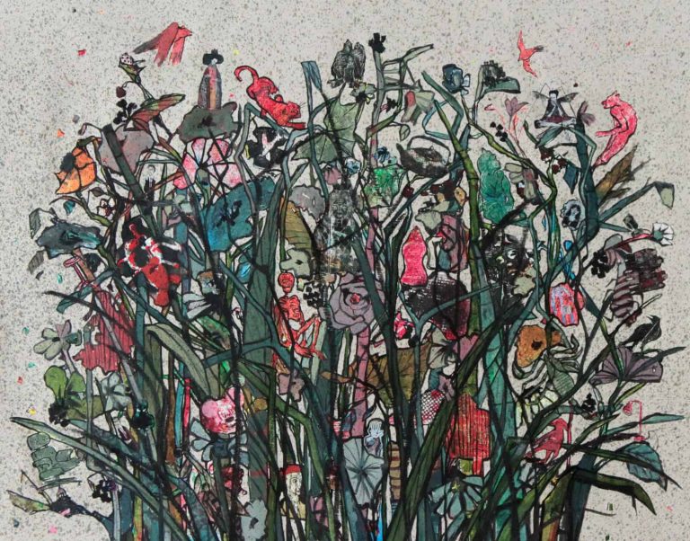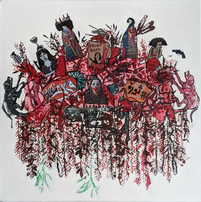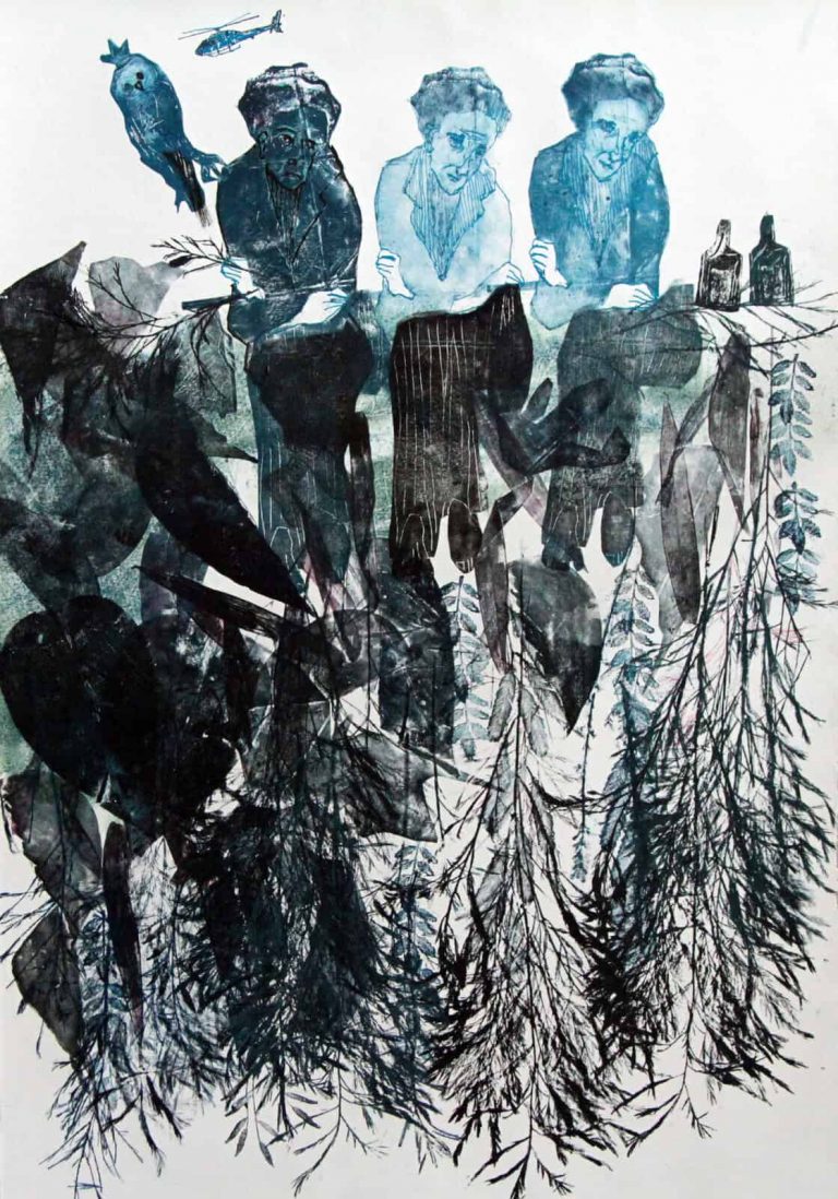 She graduated with honors from l’Academie Libanaise des Beaux Arts (ALBA), worked in advertising and taught in different universities. Her contemporary work draws inspiration from the relations and conflicts between the individual and his spatial environment, society and its surroundings. The artist uses various supports and mediums to document and explore the cultural and social changes and put on record our urban contemporary environment’s imprint as well as the impact of our society’s ideologies and political tendencies. Her work takes shape in installation, drawing, etching, experimental animation, sculpture and mainly painting. Themes that are central to her vision include present-day issues, like migration and the relation between memories and people on the move.