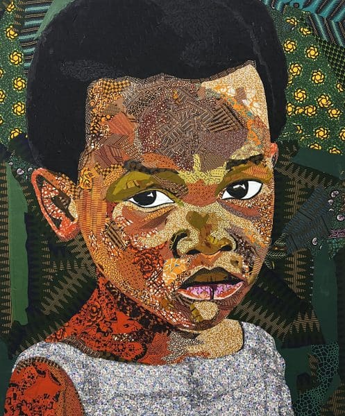Featured artists include Jules Disso, whose vibrant acrylic works like Magni (2024) and Ma’a Mboh-Mboh (2024) capture the warmth and familial connections of early years. Jeffery Baidoo’s textured fabric compositions, including Hopeful 2 (2024) and Emotional Look (2024), convey the innocence and wonder of youth. Yasser Claud-Ennin’s poignant pieces, such as In a World of Our Own (2023) and Round and Round We Go (2022), offer tender reflections on the simplicity and beauty of childhood moments.