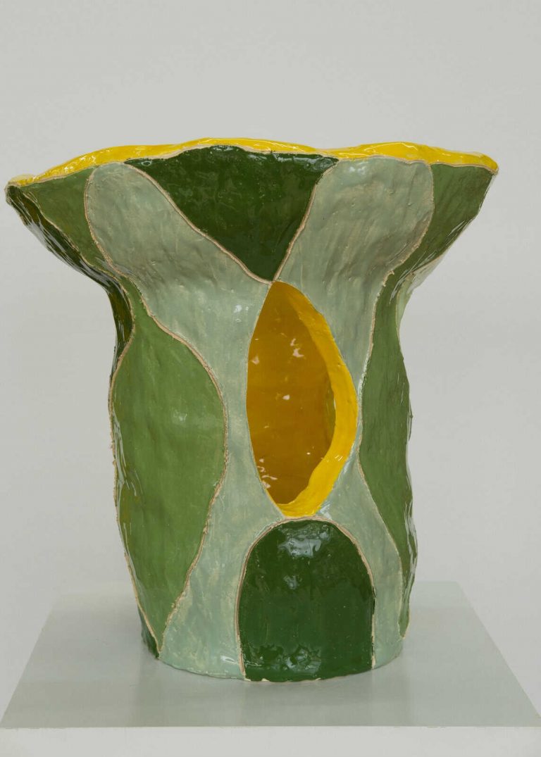 The collection ranges from minimalist monochromes, biomorphic shapes, bold coloured vases, conceptual sculptures, figural representations, painted vessels to plates with detailed drawings.