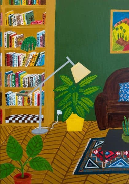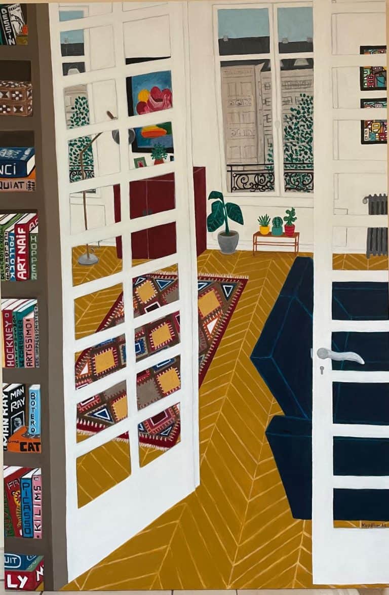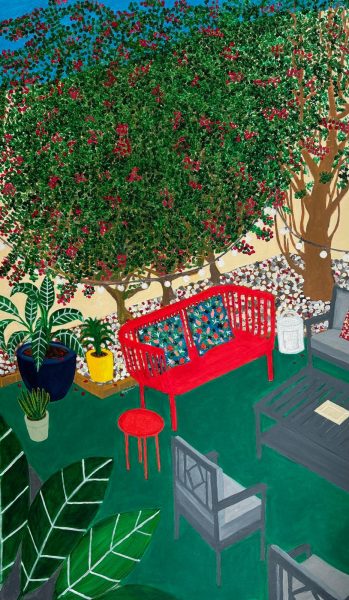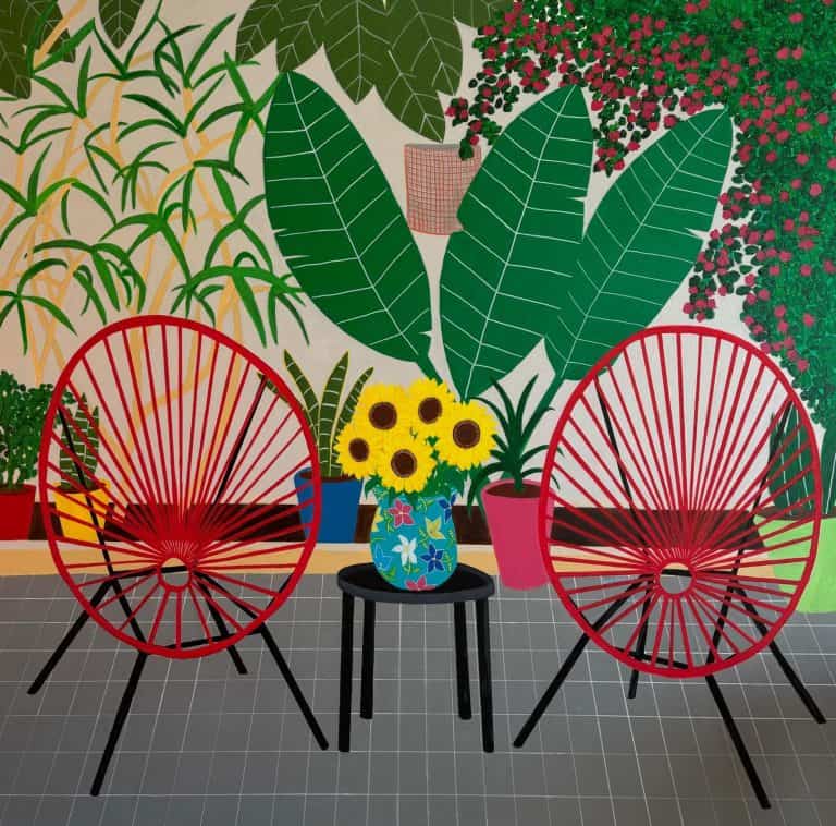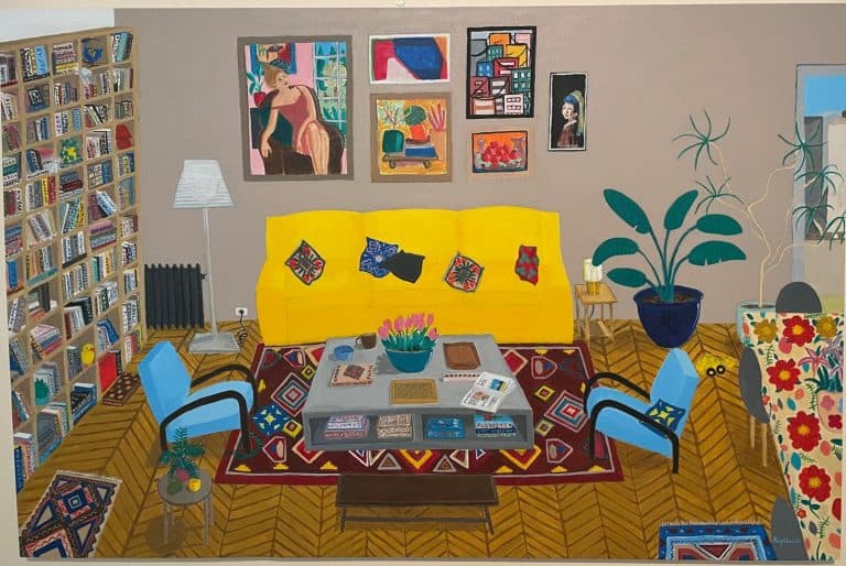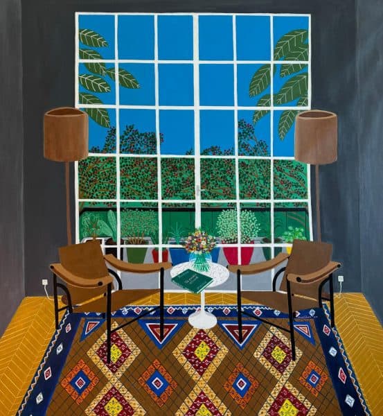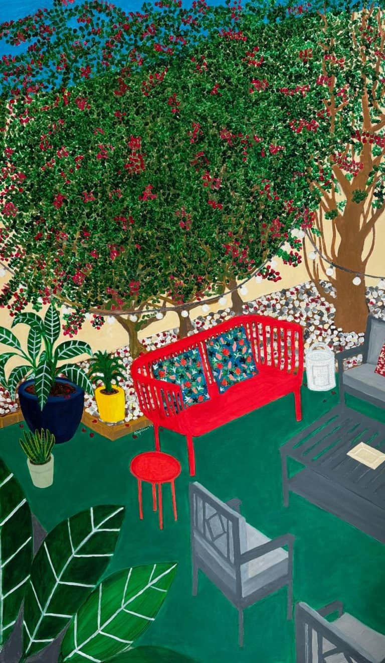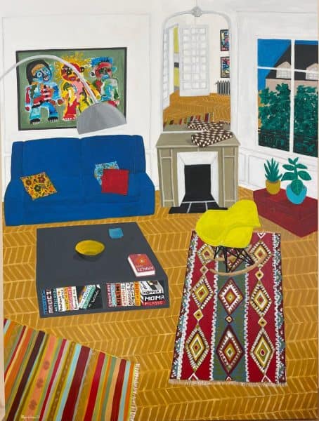 Kupelian’s mastery of colour brings his subjects to life with vibrant palettes and harmonious compositions. The works on display, including pieces like Waiting (2023) and View from My Balcony with a Twist (2024), balance playful simplicity with meticulous attention to detail. These paintings reflect the artist’s joyful celebration of life, infusing even the most still moments with energy and resonance.