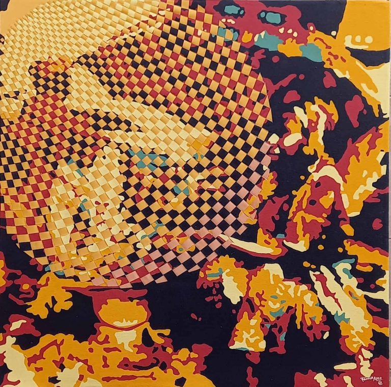 Osman Salifu is a Ghanaian artist whose work expresses a fervent pride in his identity as a young black man embracing his uniqueness and heritage. Salifu’s glistening portraits of men and women showcase his advocacy against skin bleaching and its unfathomable trend in recent times. As he says, “this new body of work seeks to address the rampant skin bleaching, which has become common in black society worldwide. I literally want to make black people aware of how beautiful and unique our skin colour can be.” Salifu’s paintings straddle the imaginative and the real-world order where the processes involved are just as compelling as the outcome. Some specifics are definite, whilst others are more reminiscent and symbolic. This gives each portrait a tactile feel and a rich tapestry of entwined techniques.