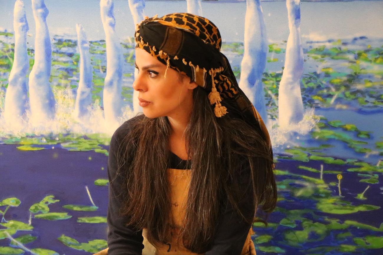 In Davoud’s paintings, time seems to stand still as she draws together reality and myth, nature and legend and as she transports the viewer to a surreal land of wonder and unity.