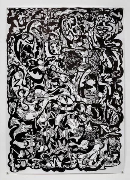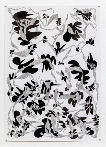 Inspired by the quintessential brutalist architectural movement originating in the UK in the 50s and prevalent in Moroccan urban landscape, Boudina uses concrete as a primary material, blending it with other mediums in original compositions. Meanwhile, Bouzoubaa-Grivel explores a novel approach to drawing that blurs the boundaries between digital and physical realms, drawing inspiration from graphic patterns and Japanese comics.